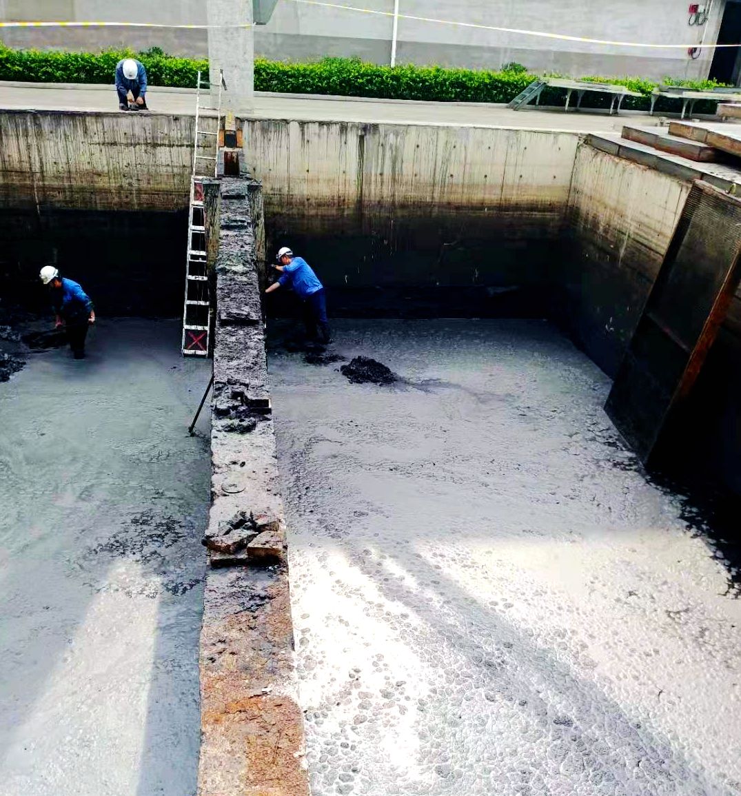 因循環水系統運行時間較長,造成循環水池內積存大量淤泥,清淤時只能一桶一桶往外清運,生產一班合理分工,兩人一組,一人在池內清理另一人在池外提運,配合默契,不分你我。